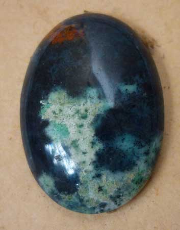 Highly polished Chrysocolla cab from Indonesia
