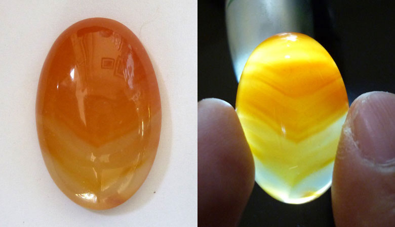 Oval cabochon translucent Banded Agate - white to orange color gradation
