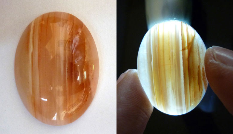 Oval cabochon translucent Banded Agate - straight line