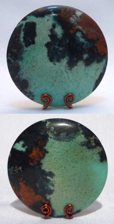 Cushion shape Chrysocolla - brown copper spot at the edge