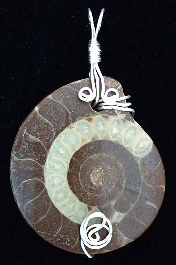 Dark brown with some chamber crystal Indonesian ammonite wire wrap pendant