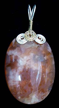 Orange Indonesian agate wire wrapped pendant